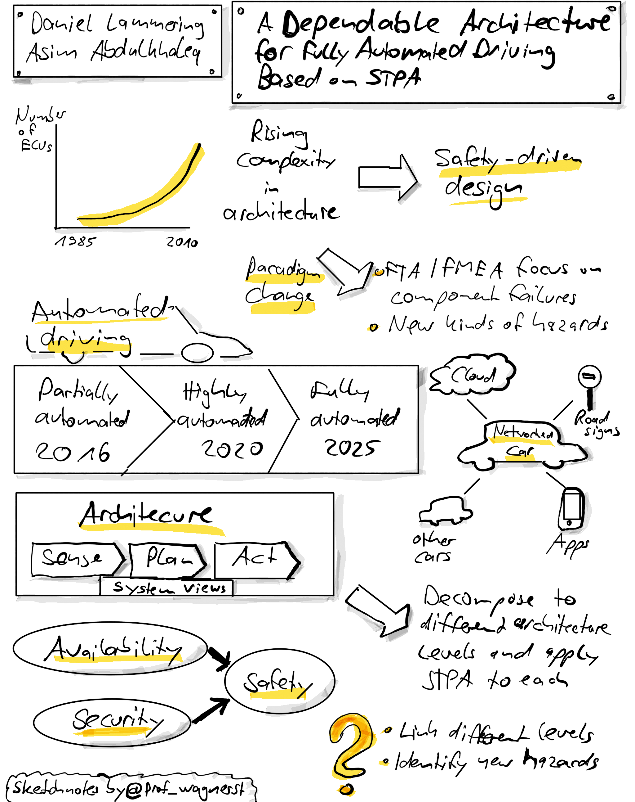 Daniel Lammering (Continental) and Asim Abdulkhaleq from my group reported at the 4th European STAMP Workshop in Zürich on how to build and analyse the architecture for fully automated driving. My sketch notes are below: