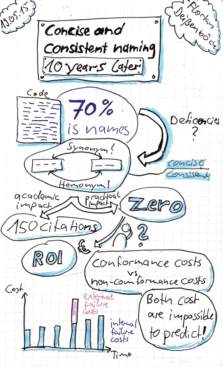 Sketchnotes for Florian Deissenboeck’s talk on concise and consistent naming: 10 years later