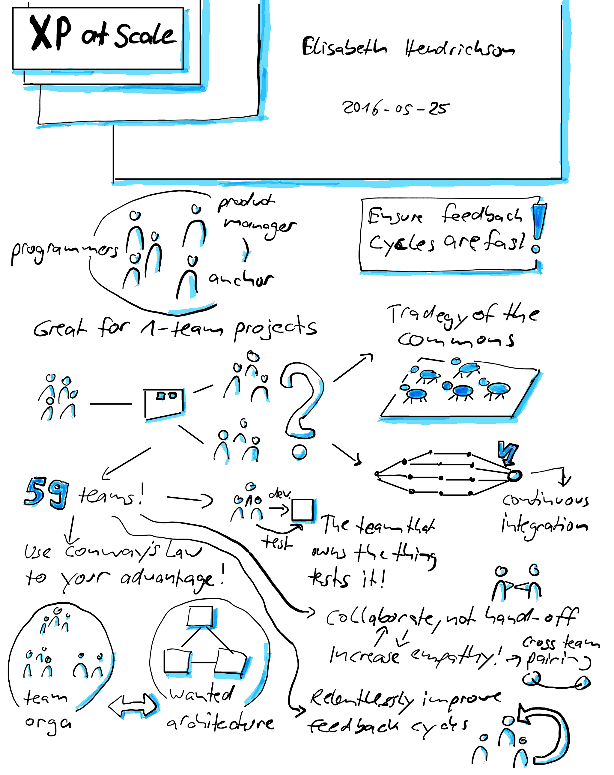 XP at Scale - Sketchnotes for Elisabeth Hendrickson's talk at #XP2016